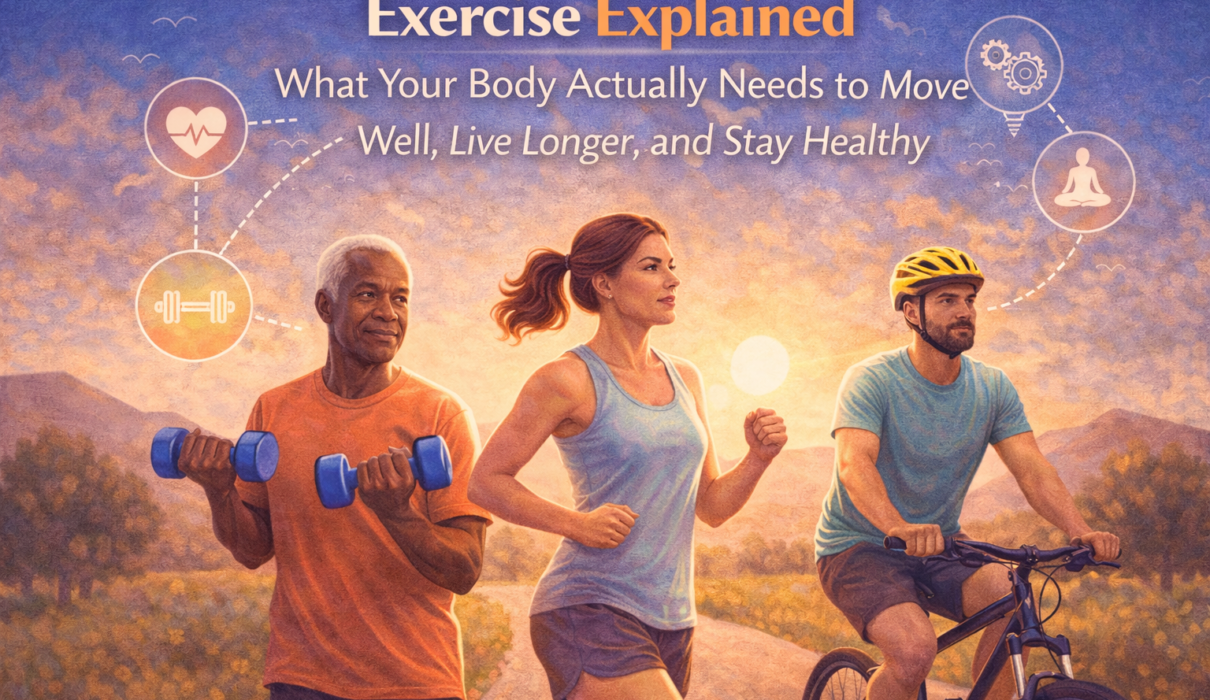 This article covers the full picture: the science behind exercise and health, what the evidence-based guidelines actually say, how different types of movement produce different benefits, who is at risk from doing too little, and what the realistic path to a more active life looks like for most Americans.